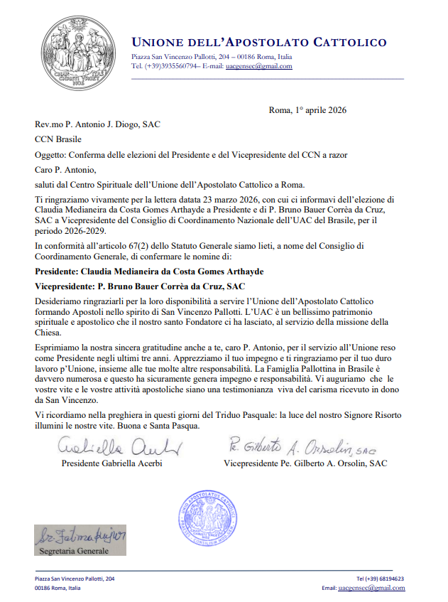 Em um encontro marcado pela fraternidade, espiritualidade, partilha e compromisso com a missão apostólica, tendo como principal objetivo a eleição do novo Conselho Nacional da UAC para o triênio 2026–2029, ficou assim definido: